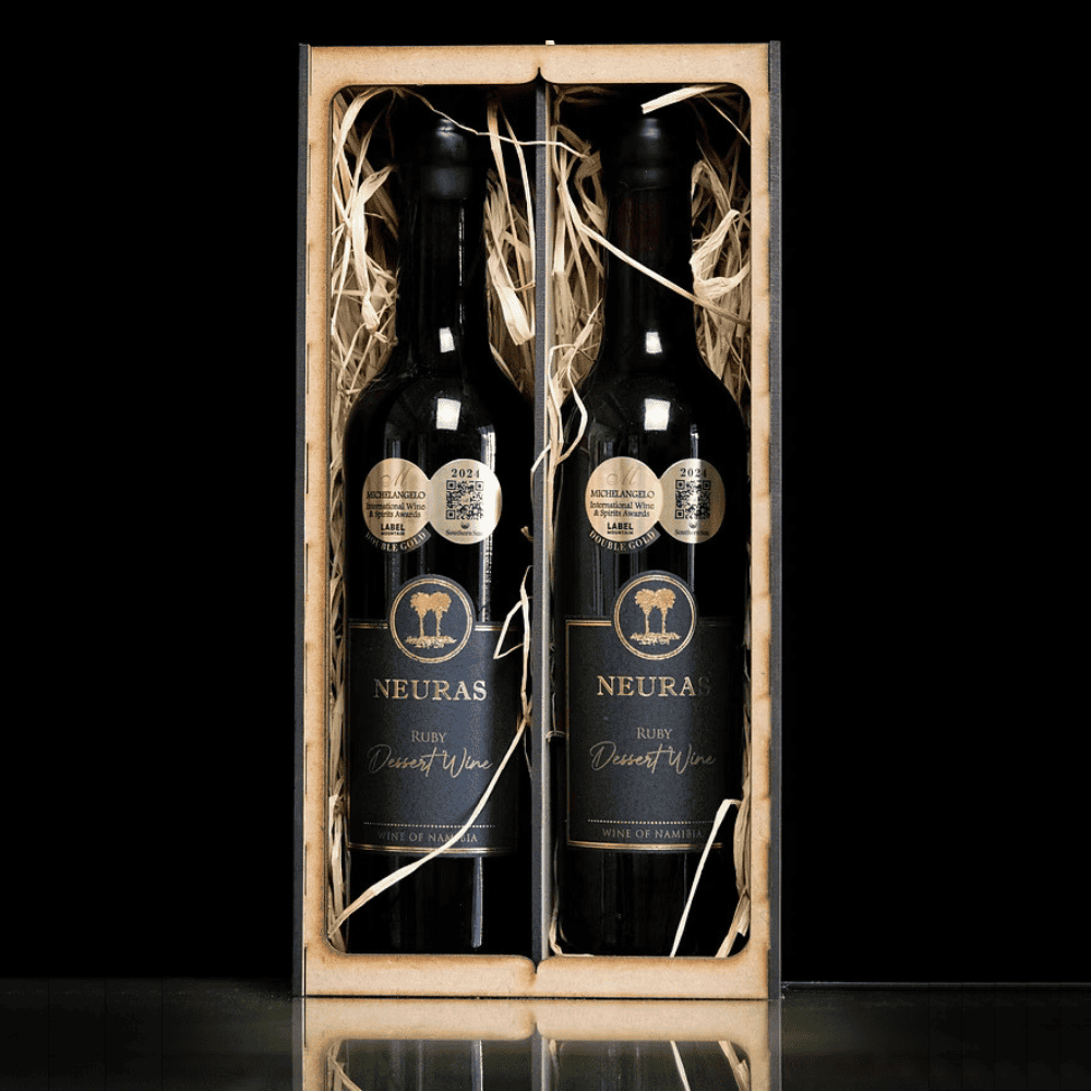 Indulge in the rich, velvety embrace of Neuras Ruby Dessert Wine, a true testament to the unique terroir of Namibia. Crafted with precision and passion, this exquisite dessert wine boasts a symphony of flavours, blending luscious notes of rich aromas. Perfectly balanced with a sweet finish, it’s an ideal companion to decadent desserts or a fine cheese platter.
